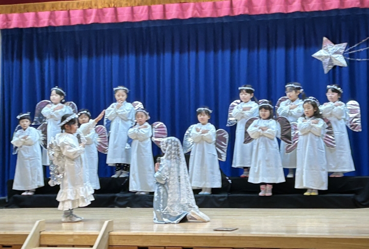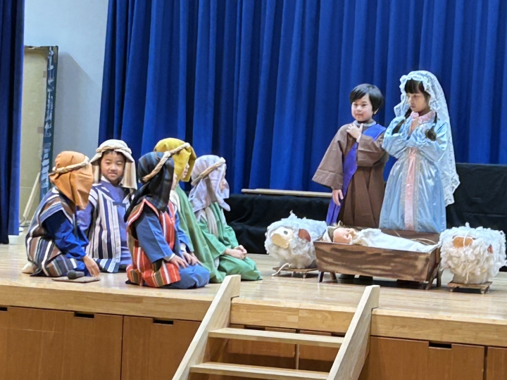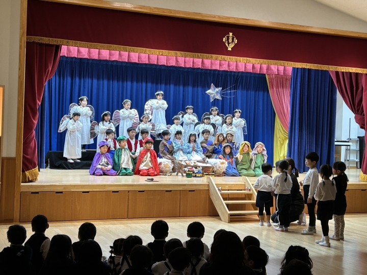 年中組さんも村人役で、イエスさまのお生まれをお祝いしました。