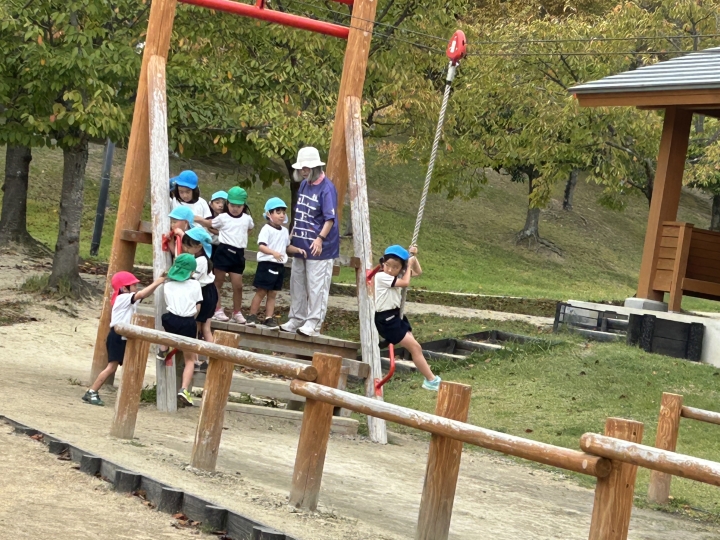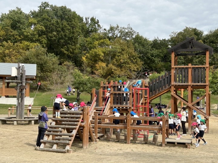 春の遠足はお家の方も一緒に行きましたが、秋は先生と子どもたちだけで行きました。元気に駆け回り、お友だちや先生に手を振って、楽しそうに遊んでいる姿を見て成長を感じました。
