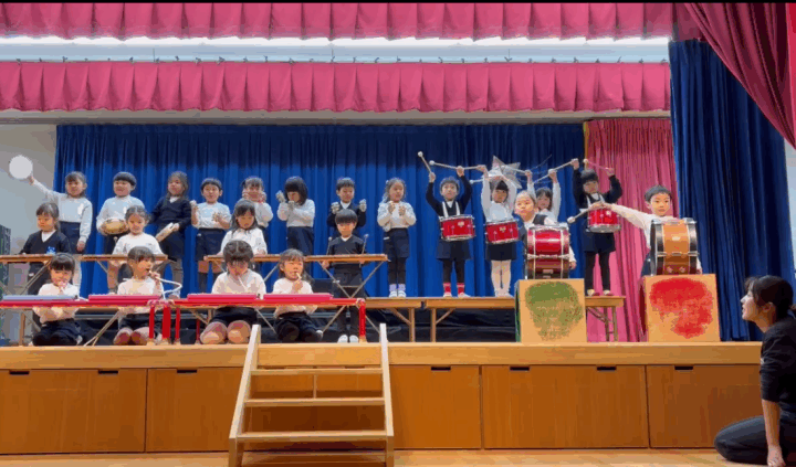 (年中組)おしゃれなクリスマスメドレー! 練習ではいろんな楽器をかわりがわり楽しんでいたね。何役もこなす姿が頼もしかったです。