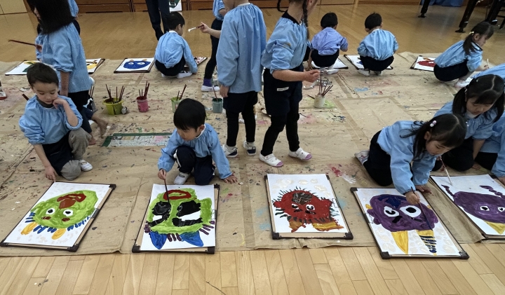 今までに楽しんで描いてきた絵の中から、子どもたちが自分で選んだ作品も飾り、お家の方に見ていただきました。たくさんのご来園ありがとうございました。