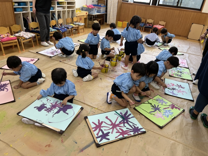 静かにお話を聞いて、よく見て描きました。こんなに素敵な絵が描けるようになったんだね。穏やかな優しい秋を感じました。