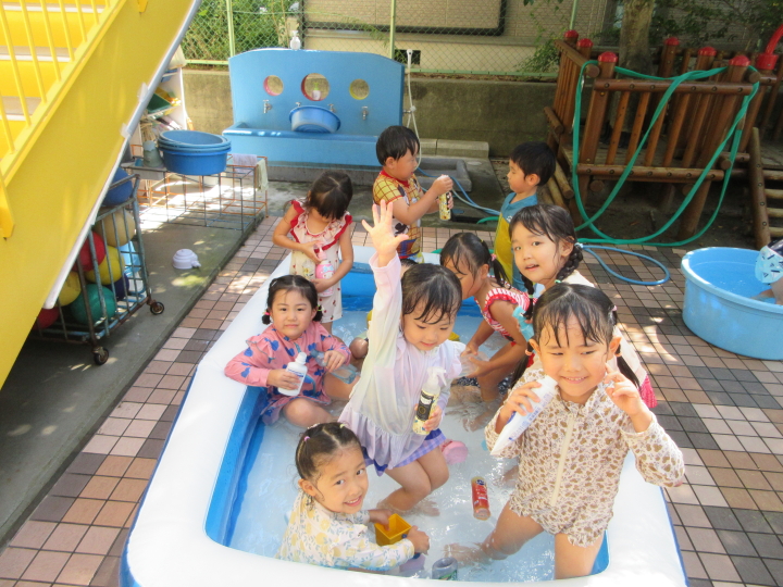 9月もまだまだ暑いのでお水遊び。(年中組)