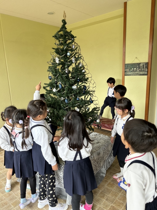 一番上の大きなお星さまは、イエスさまのお生まれを知らせています。聖劇に出てきたね。