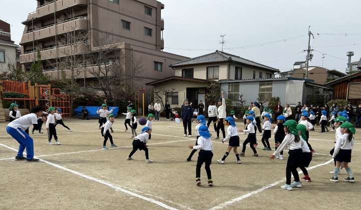毎年恒例の親子対決では、「スポーツの厳しさを教えてやってください!」という、体育指導の細矢先生の言葉に、お父さんお母さんからびゅんびゅんボールが飛んできて、子どもたちも負けずに戦っていました。